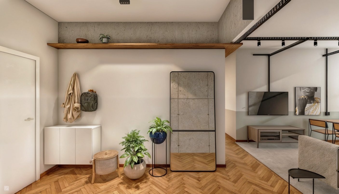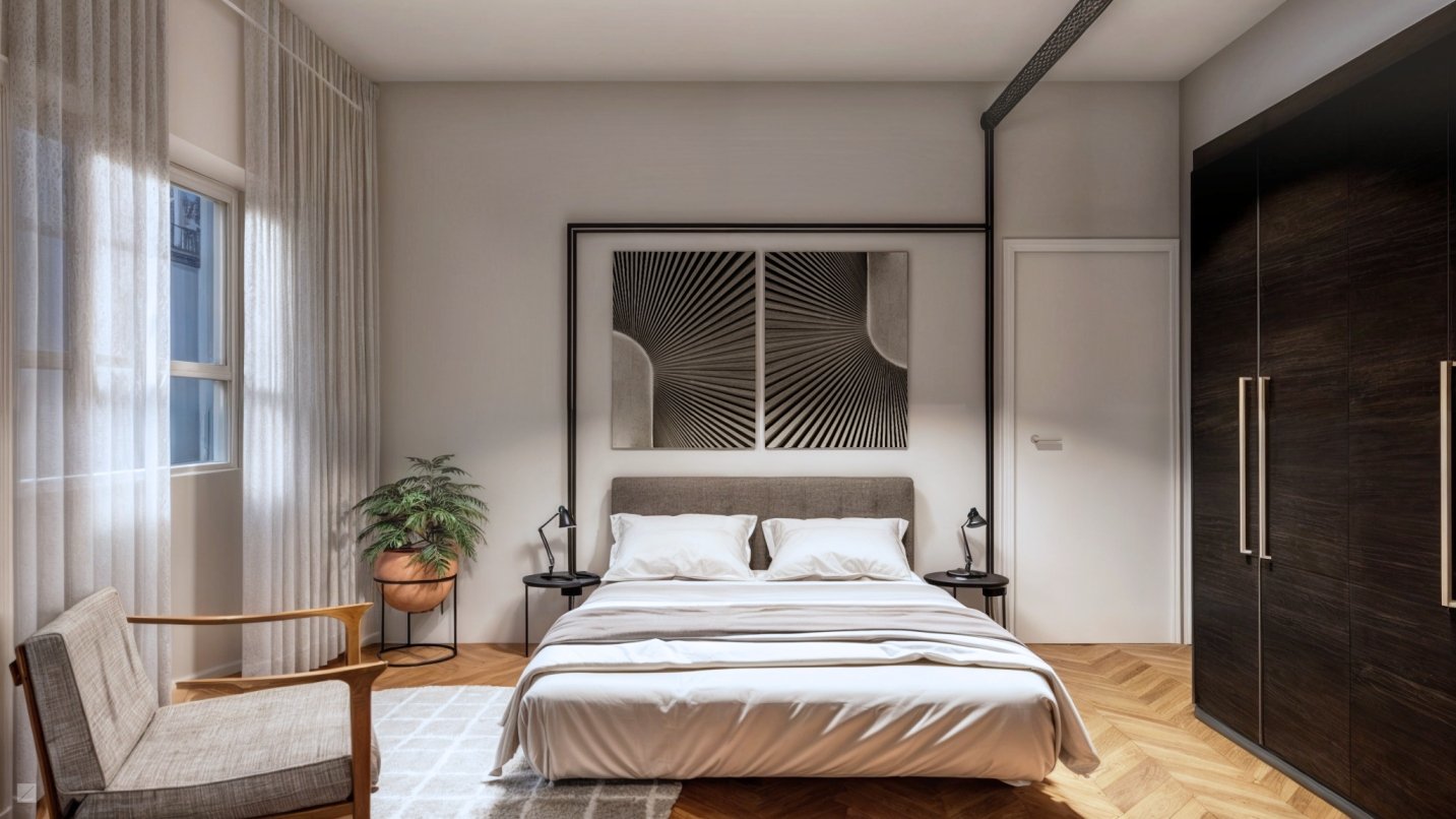 Interessante como podemos imprimir a personalidade nos projetos. Esse projeto foi uma tela em branco (quase literalmente), onde apenas o famoso piso de taco de São Paulo estava presente. Ao conversarmos com o cliente e aprendermos sobre seus hábitos, gostos e aspirações, chegamos à proposta de um apartamento com uma discreta pegada industrial.